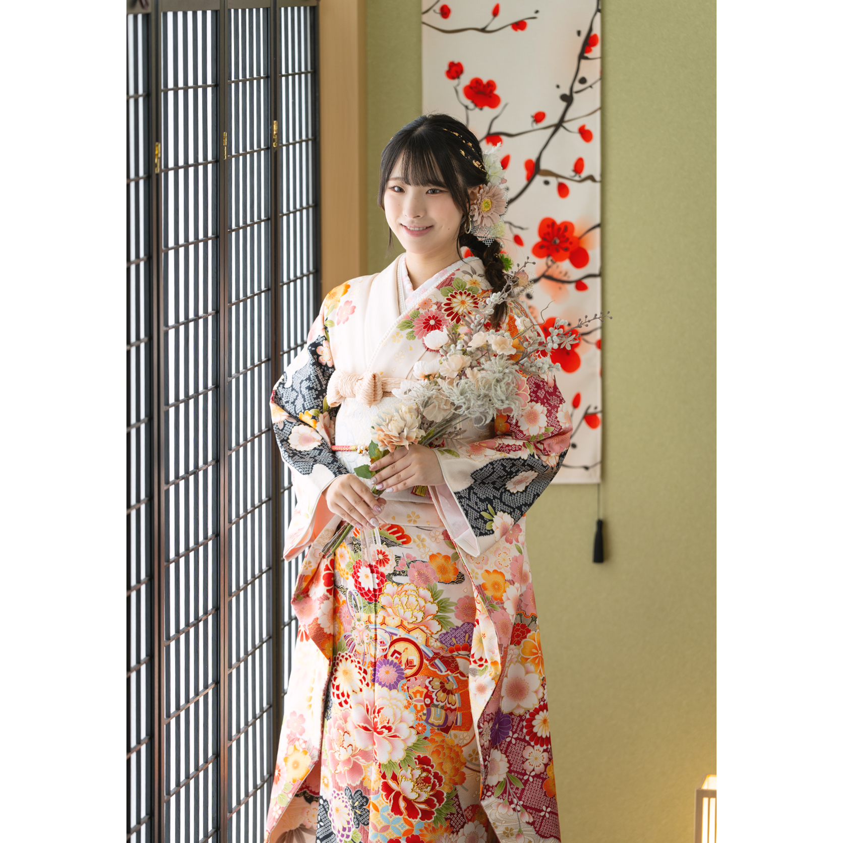 当店ではたくさんのお振袖をご用意しております。プロの美容師によるヘアメイク、和装着付け高等師範常駐で着付けも安心。前撮りで時間を気にせず、ゆとりを持って撮影して頂けますので、いつものナチュラルな表情をお写真に残すことが出来ます。プロによる多ショット撮影で、色々な表情、素敵なポーズをお撮りします。