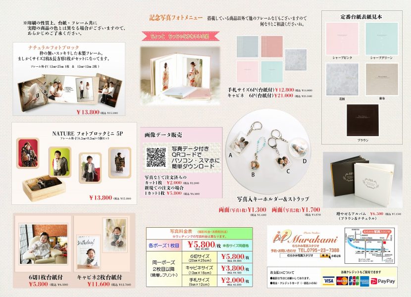 日本の伝統行事の「七五三」。お子様の一大イベントです。 むらかみ写真スタジオでは一生残る大事な写真を、心を込めて撮影いたします。近年、お宮参りに行かなくても写真だけ残す方もいらっしゃいます。